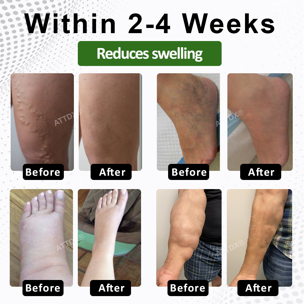 With consistent use swelling visibly reduces, legs feel lighter, and mobility improves, restoring comfort and confidence in daily life.