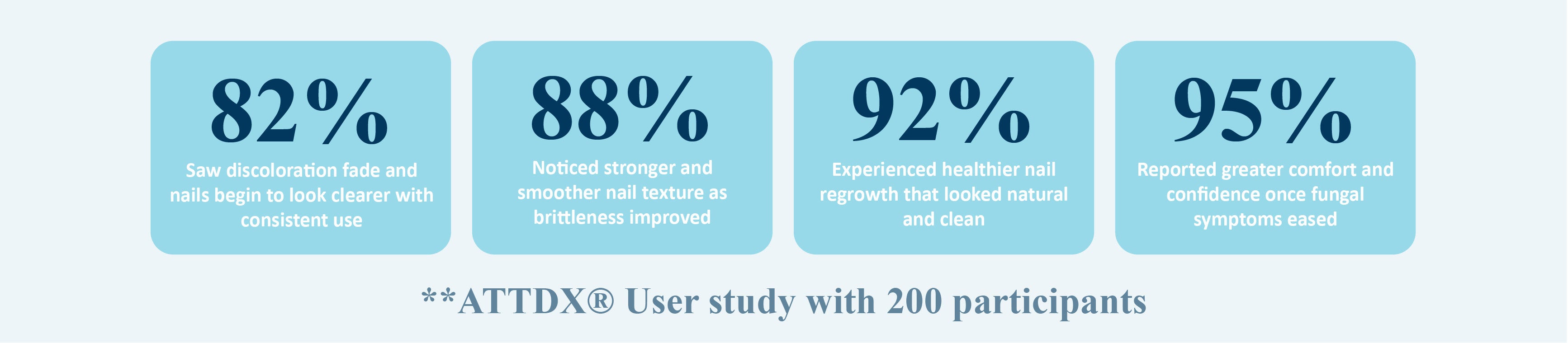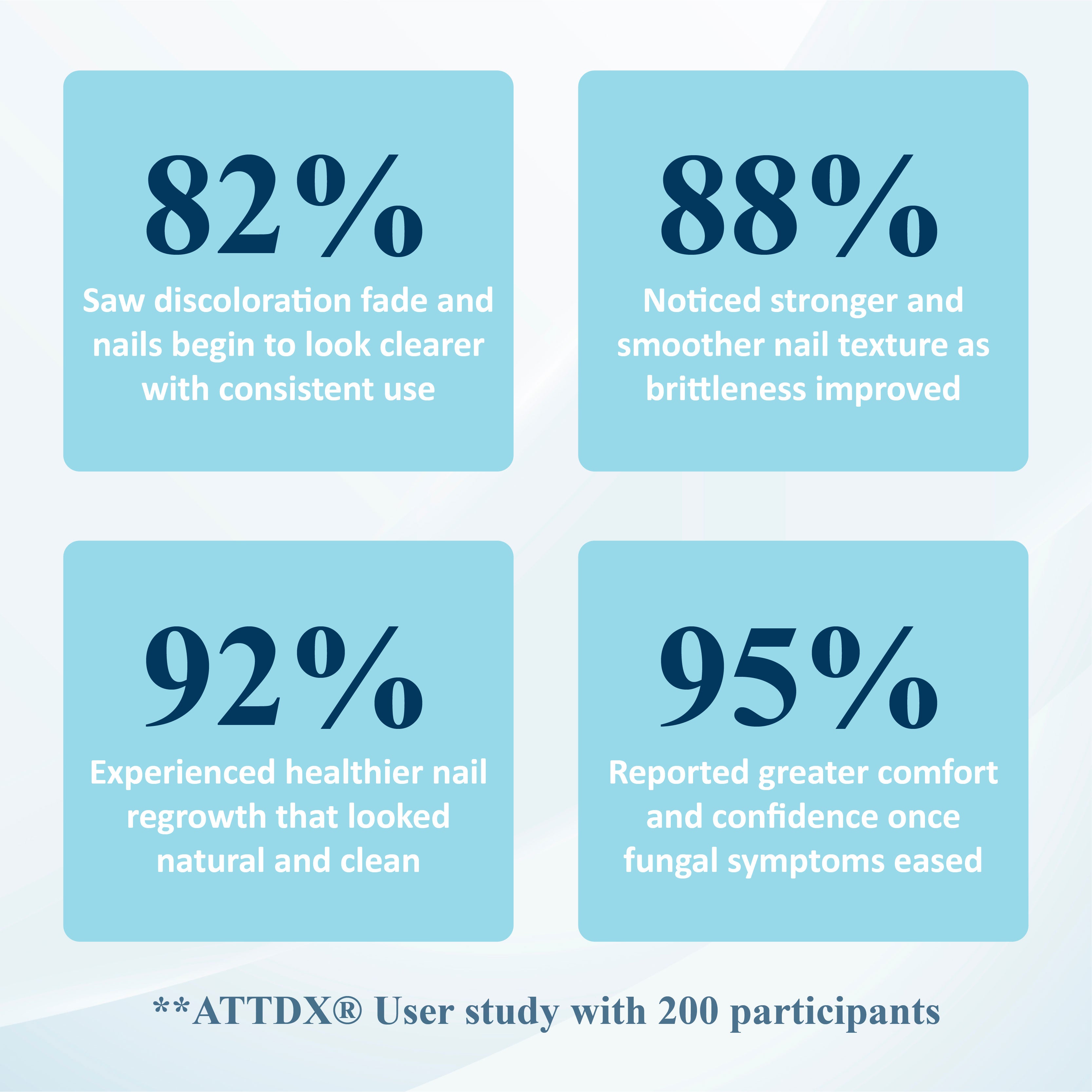 The advanced formulation of ATTDX® MycoStop Nail Recovery Serum Pen, enriched with Cinnamon Leaf Oil and 25% Undecylenic Acid, has demonstrated superior outcomes in controlled trials.